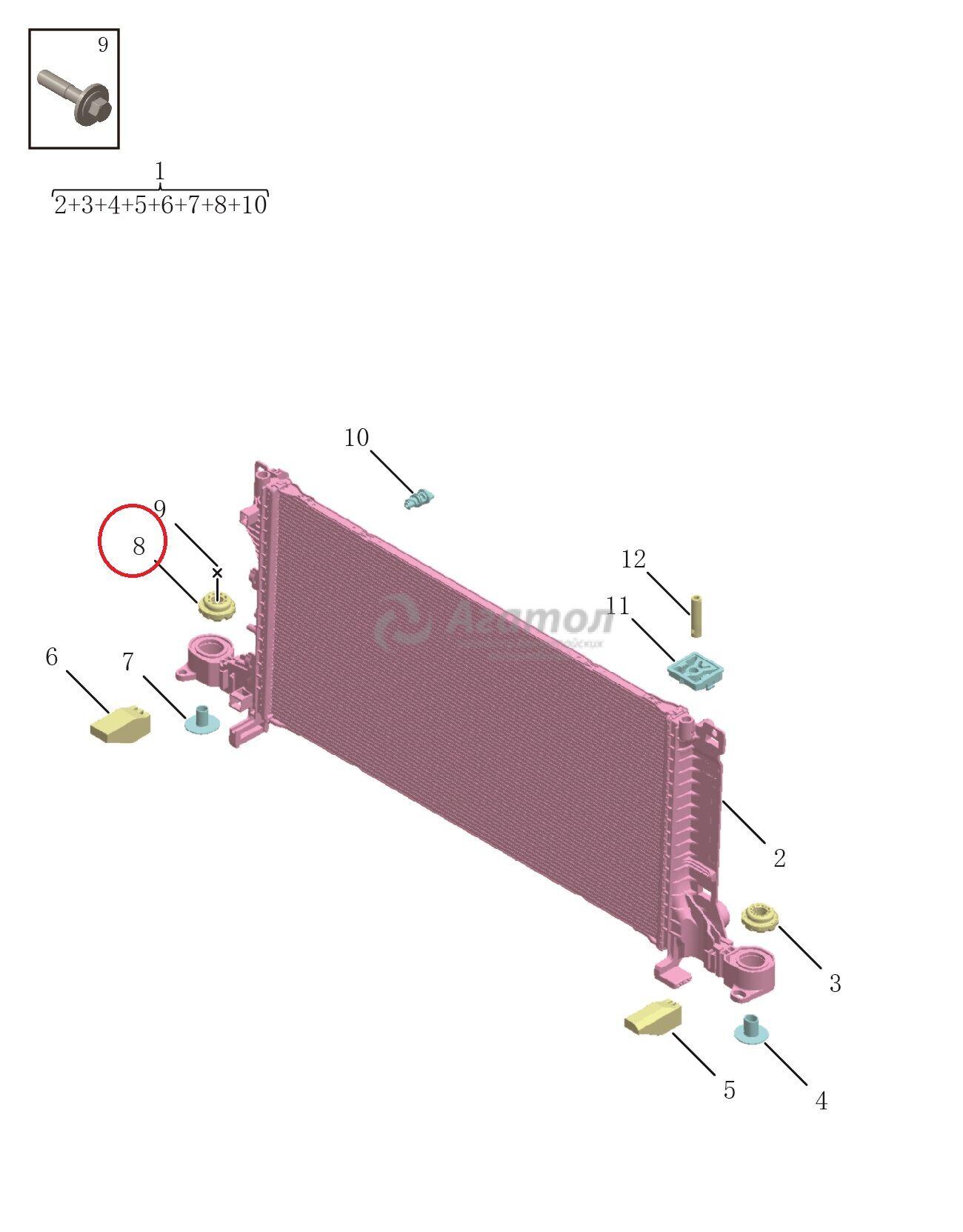 Описание вТУЛКА РАДИАТОРА ПРАВАЯ Оригинал: