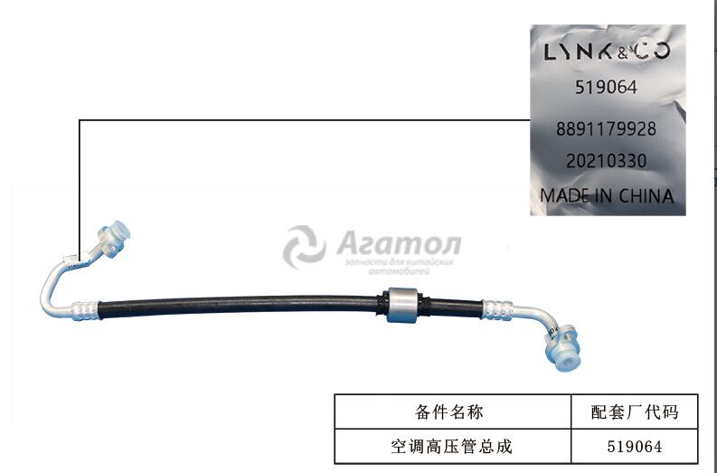 ТРУБКА В СБОРЕ-КОНДИЦИОНЕР ВЫСОКОГО ДАВЛЕНИЯ 8010090800 Оригинал GEELY
