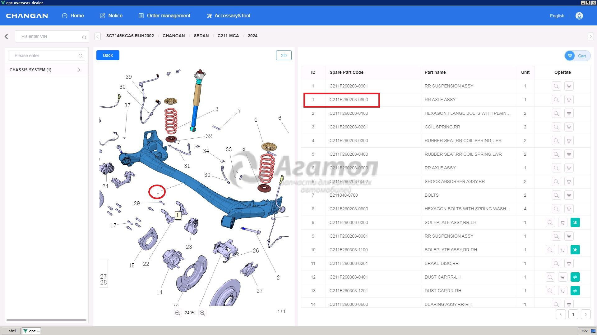 Балка задняя C211F260203-0600 Оригинал CHANGAN