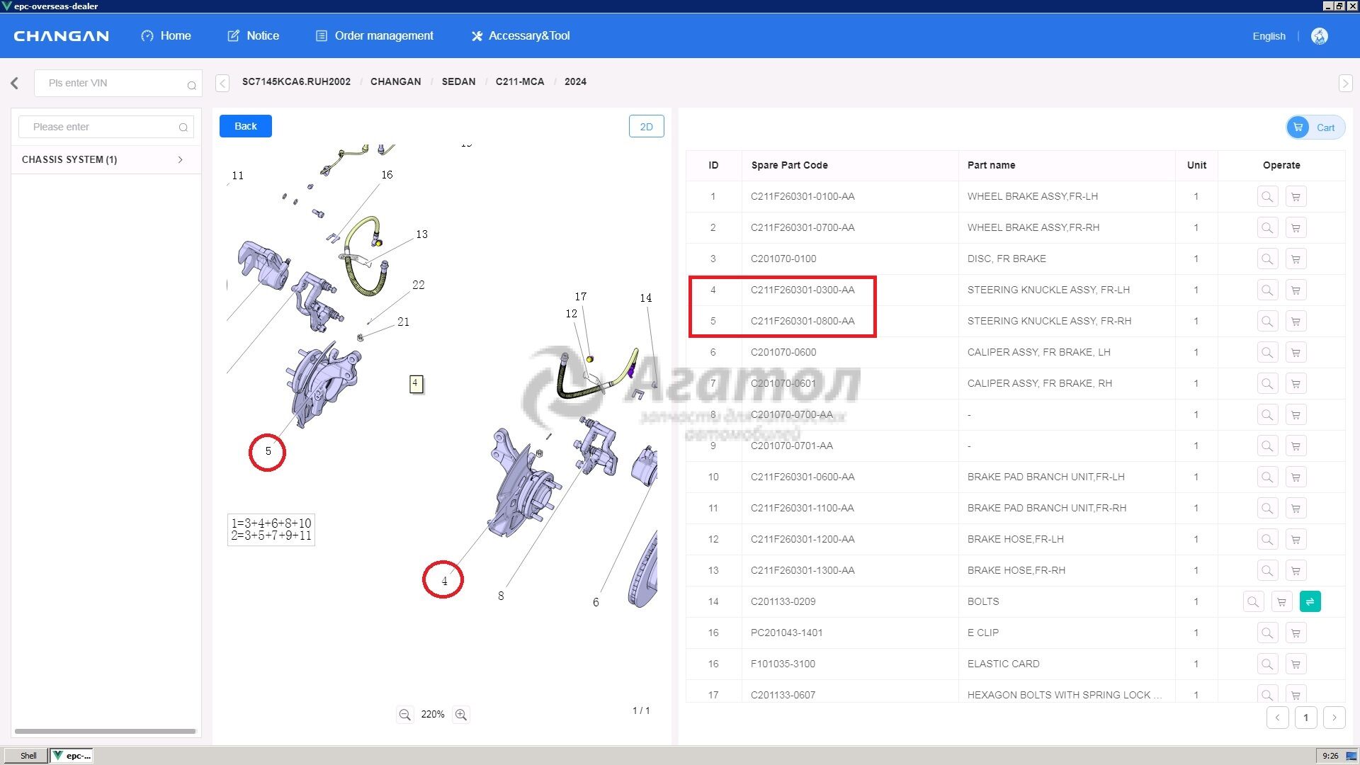 Кулак пер прав (не в сборе) C211F260301-0800-AA Аналог (Китай) CHANGAN